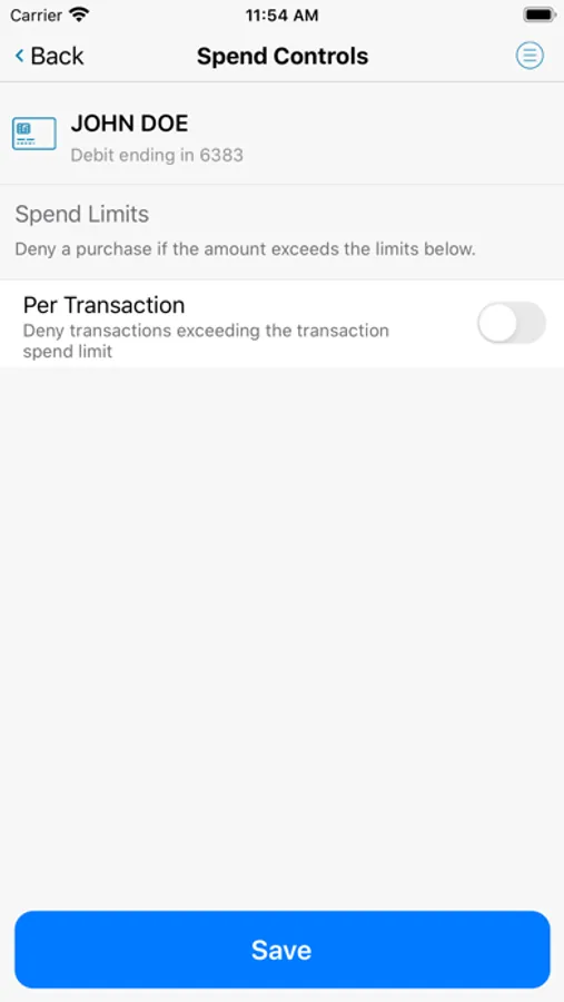 Spending limits can be established to allow transactions up to a certain dollar value and decline transactions when amounts exceed your defined thresholds. Transaction can be monitored and managed for specific merchant categories such as gas stations, department stores, restaurants, entertainment, travel and groceries. And you transaction can also be monitored for specific transaction types in store purchases, e-commerce transactions, mail/phone orders and ATM transactions