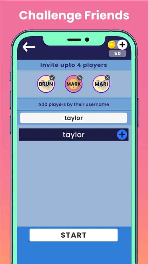 Word Win lets you invite up to FOUR friends with their username (created in the app). Our scoreboard after each level will enable you to track your progress based on both levels and challenges. You can view the level winners, the number of words found, and the time taken to complete each level.
