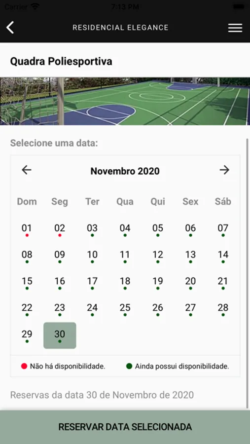 Consulte a disponibilidade e reserve/cancele sua área de lazer.
