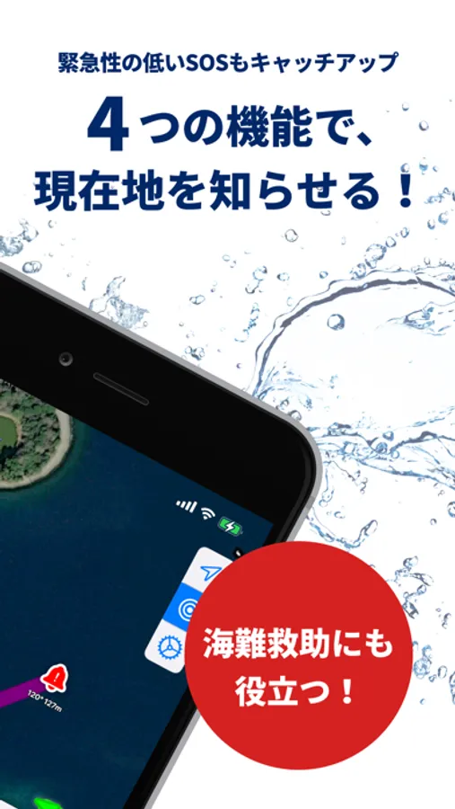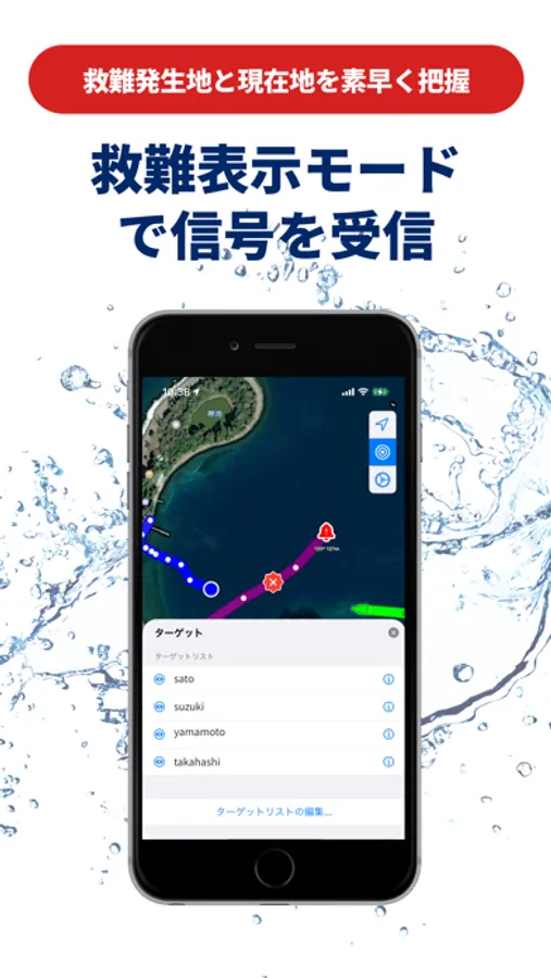 エマージェンシー信号を受信すると、救難表示モードに切り替わります。救難発生地と現在地を確認して、素早く救助に向かうことができます。
