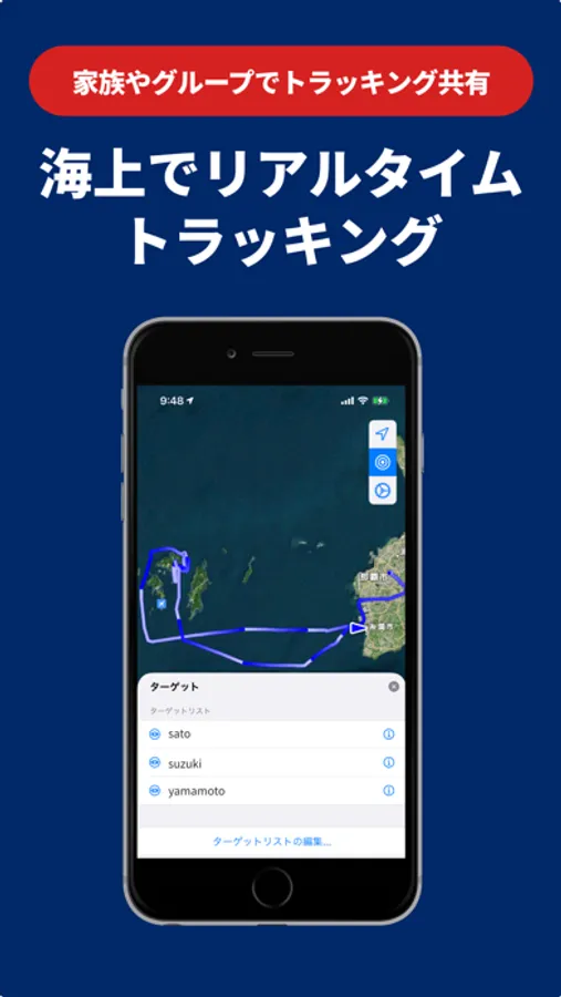 SEAKER_L3が海上にあっても、リアルタイムでトラッキングすることが可能です。デバイスを「フォロー」することにより、家族やグループでトラッキング情報を共有します。