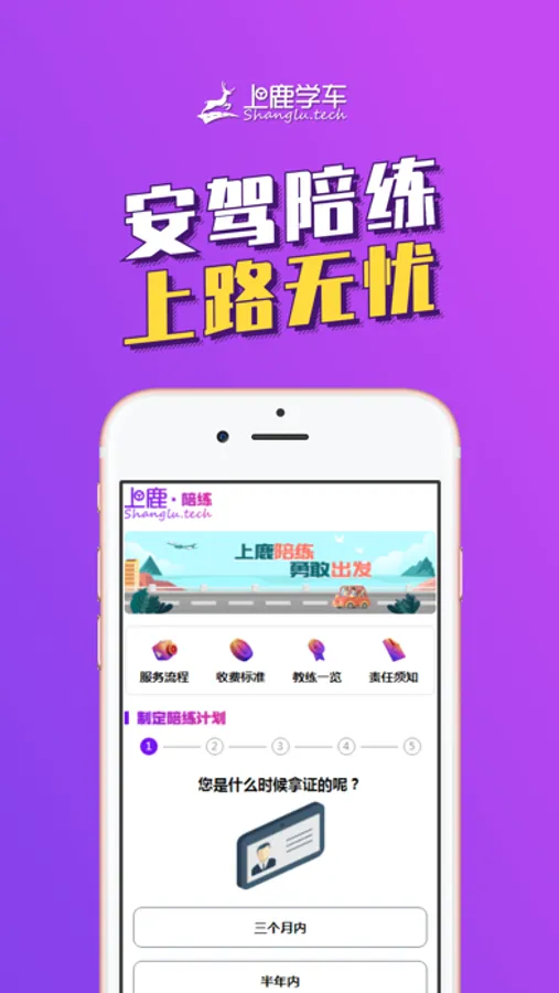 上鹿学车专注于互联网优质驾培服务体系的建设,同时提供安驾陪练服务补足学员学驾的“最后一公里”,让学员在学驾过程的前、中、后阶段都能得到不一样的服务体验;上鹿学车不断深入挖掘驾培场景中的落后形式和差劲感受,结合平台优势对学员的学车体验感知度进行精细化改善与提升,引导驾培资源向优质品牌逐渐倾斜,开创美好学车体验的全新驾培生态格局。