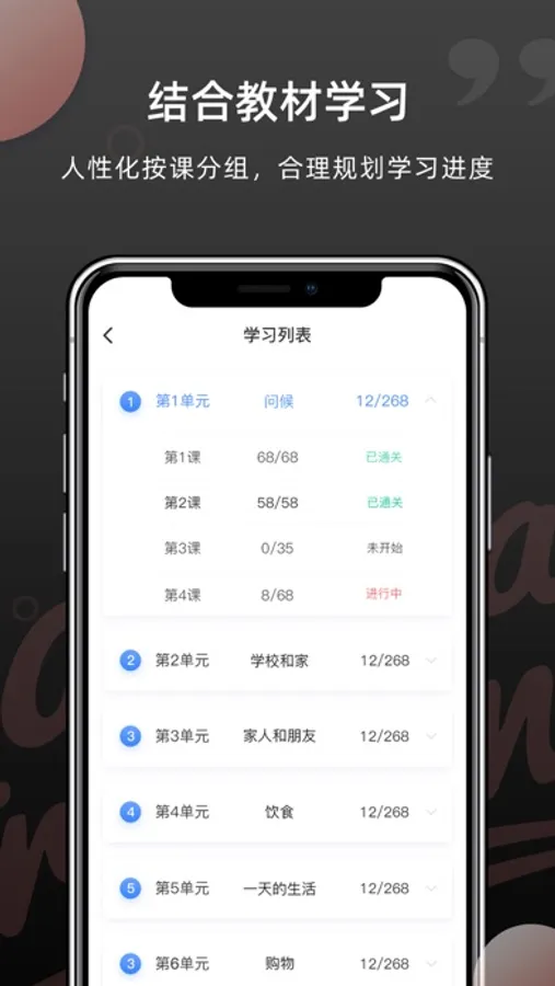 科学的教材同步学习,每课单词清晰划分,效率更高,对着书本学习,一课一记。