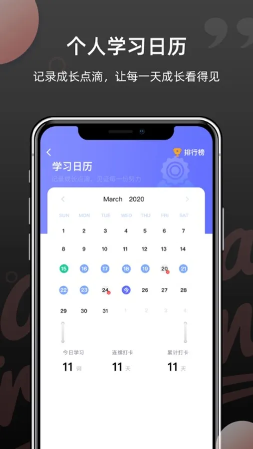 自定义提醒时间,你的学习时间又不足30%啦,骚年,快来背词!
