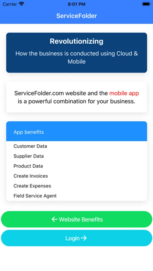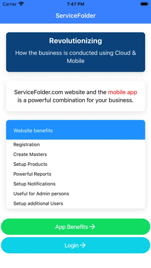 ServiceFolder helps your field and office staff organized better. No need to using books and registers. The field tech will get all the information required to attend the customer site on the mobile.