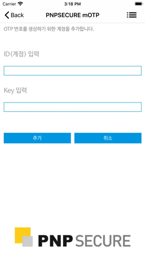 PNPSECURE mOTP 는 더욱 안전한 이중요소인증(Two-factor Authentication)을 제공합니다.