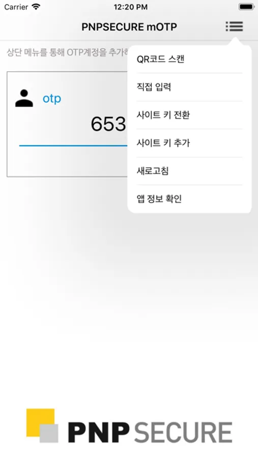 * PNPSECURE mOTP 주요 기능