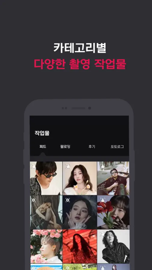 여러가지 컨셉으로 촬영한 작업물을 구경할 수 있어요. 작업물이 마음에 든다면, 좋아요와 댓글을 남기고 해당 작업자에게 메시지를 보내보세요.