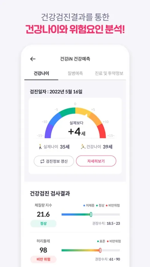 건강나이, 심뇌혈관 예측, 당뇨병 예측을 건강검진 받아보고 라이프월릿에서 매년 확인해보세요!