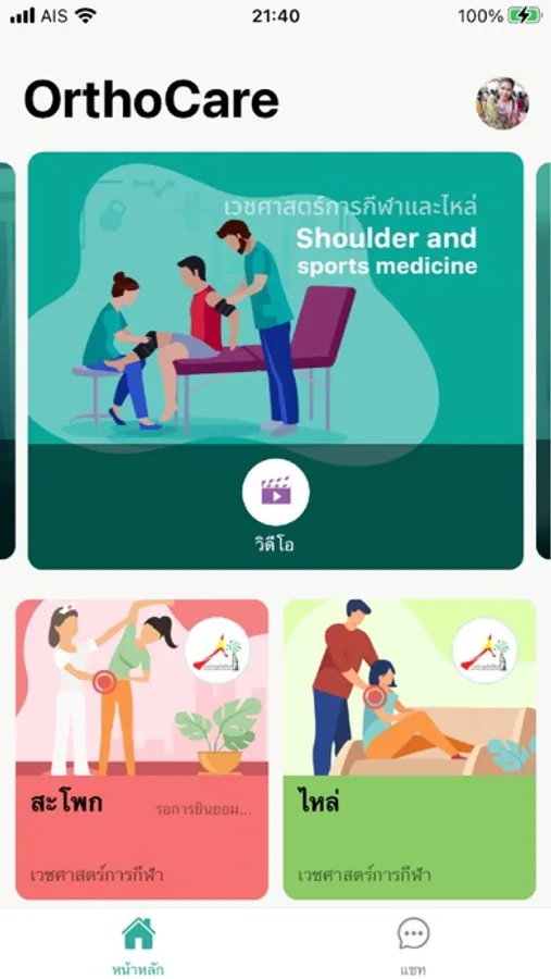 OrthoCare แอปพลิเคชันสำหรับผู้ป่วยกระดูแลข้อ ที่สามารถทำให้ผู้ป่วยดูแลสุขภาพด้วยตนเอง และยังมีเเพทย์ติดตามอาการอย่างใกล้ชิด ด้วยทีมแพทย์ผู้เชี่ยวชาญจากภาควิชาออร์โธปิดิกส์