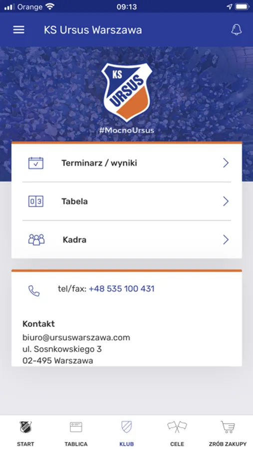 Oficjalna aplikacja KS Ursus Warszawa umożliwia wspieranie Klubu poprzez codzienne zakupy!