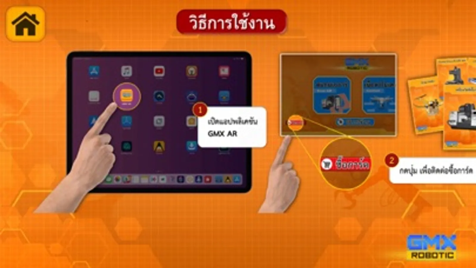 GMX ROBOTIC เป็นแอพปลิเคชั่นด้านการศึกษาแบบความจริงเสริม ที่มุ่งเน้นให้ผู้เรียน ได้เรียนรู้ด้วยเทคโนโลยีเสมือนจริง เกี่ยวกับการจำลองหุ่นยนต์ ประเภทต่างๆ กับการทำงานแทนมนุษย์โดยสามารถสั่งซื้อได้ที่ ร้านจีเอ็มเอ็กซ์ เอ็ดดูเคชั่น โทร.0616241661