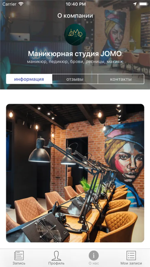 В студии JOMO вы сможете сделать маникюр, педикюр, брови, ресницы и макияж.