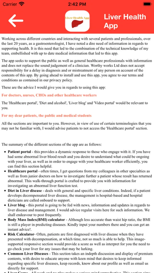 Liver Health App is a small but powerful app with tones of information and guidance for the public, patients, nurses, doctors and health professionals to have.
