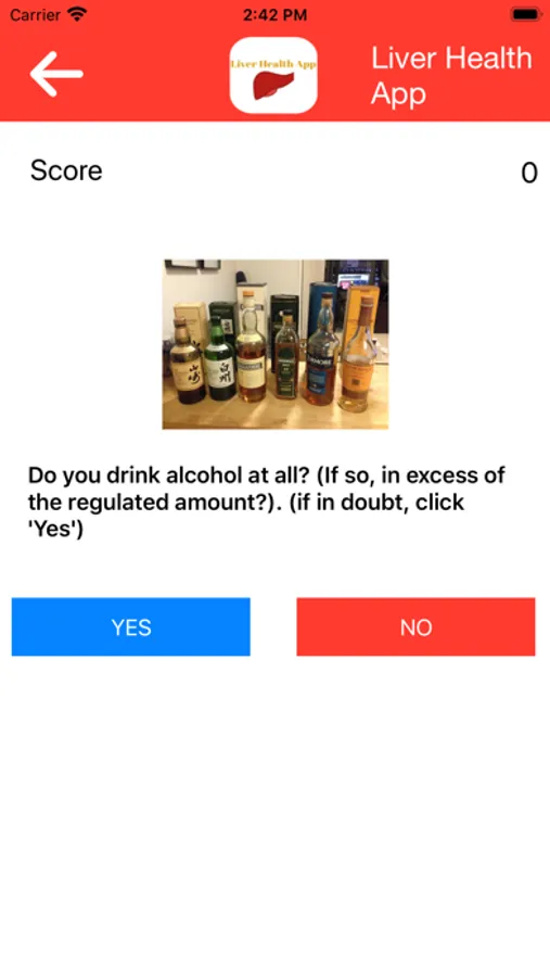 1. Risk assessment section - Here, there is an image guided assessment and an eventful feedback regarding whether or not the user of the app has a risk for developing liver damage. It ends by providing a direction for the user on what to do.