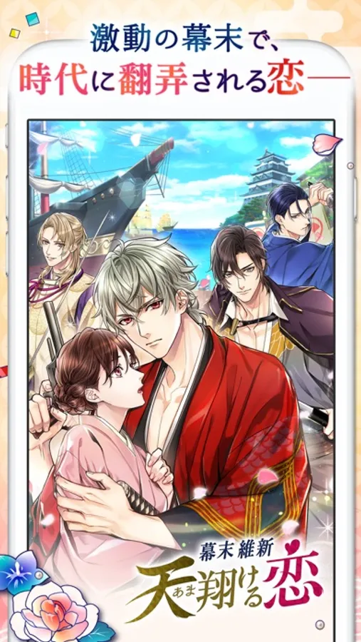 「幕末維新 天翔ける恋」では、時代を変えるために命を懸けた志士たちとの恋が楽しめます。無料でも楽しめる大人気恋愛ゲームアプリです!