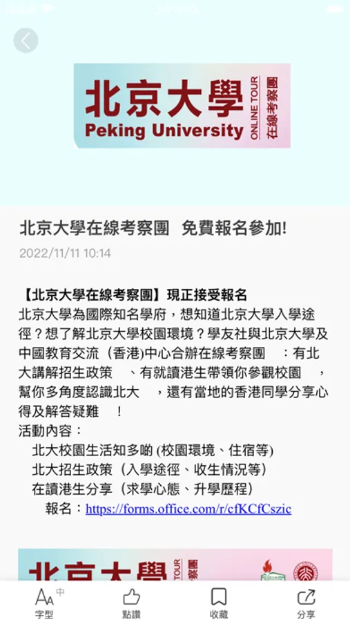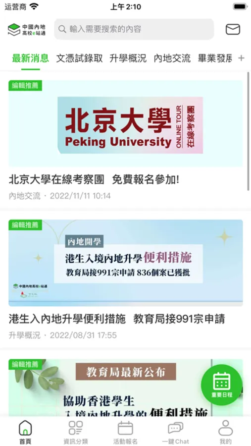 「中國內地高校e站通」手機App由中國教育交流(香港)中心及學友社聯手開發,讓同學一手掌握內地短期交流及高等院校升學資訊。