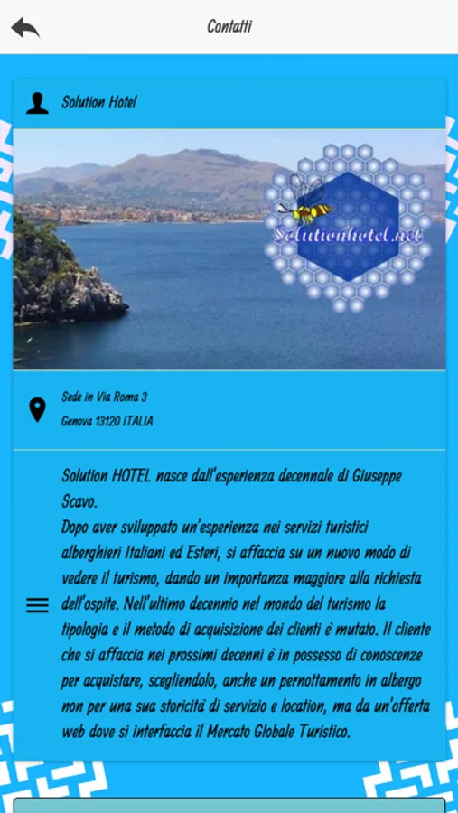Solutionhotel il portale è dedicato a tutte le strutture alberghiere che hanno bisogno di un assistenza per la vendita dei propri prodotti camere nel mercato on-line sempre più amplio di offerte, l'aumento negli ultimi anni dell'acquisto on-line delinea che la tecnologia aiuta e facilita il processo delle prenotazioni per la vostra struttura, il nostro intento e quello di dare visibilità e appetibilità della vostra struttura nel mercato italiano ed estero, al fine di aumentare i vostri fatturati delle prenotazioni dirette ed indirette.