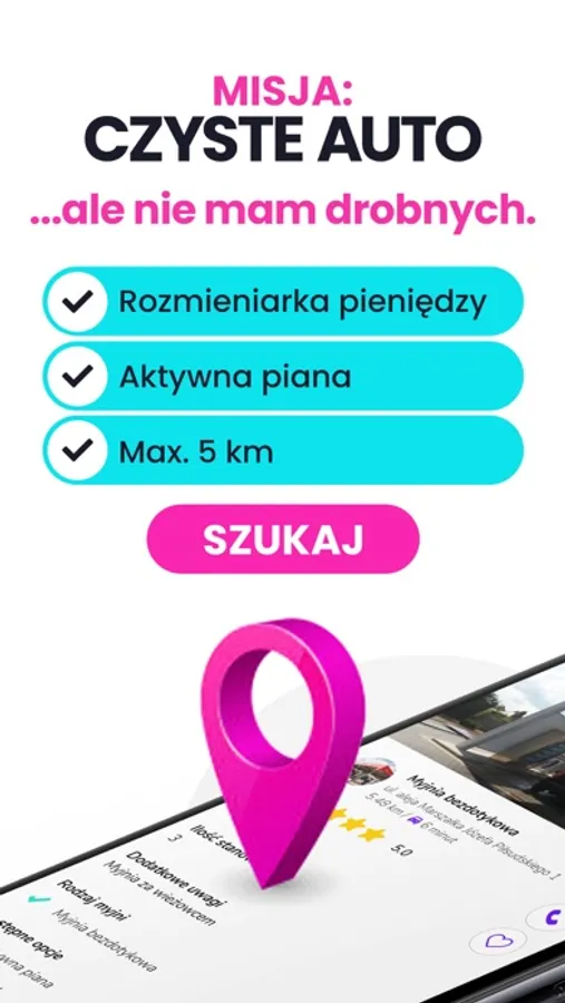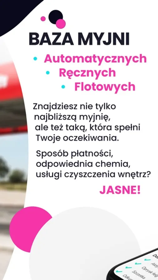 - Szybki dostęp do informacji o myjniach w dowolnym miejscu