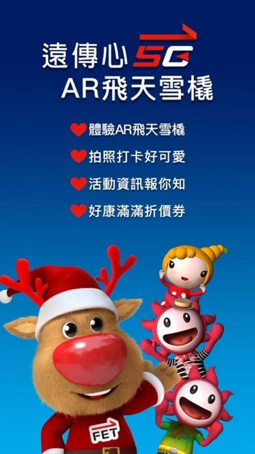 點選"體驗AR飛天雪橇"跟著愛喜嗲鹿一起駕著飛天雪橇,尋找天上的愛心,即可獲得好康滿滿的優惠券,再點選“拍照打卡好可愛”選擇喜歡的AR公仔,一起歡樂合照打卡,分享給朋友吧!