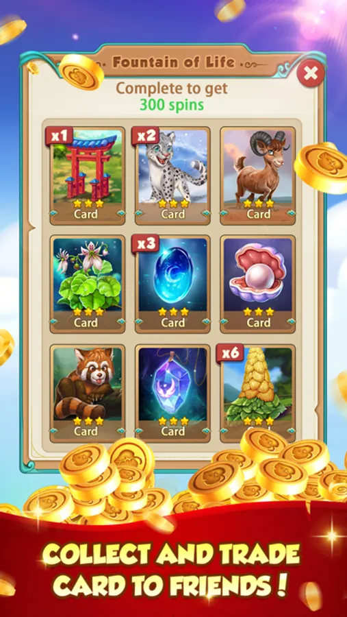Collect cards to complete set collection and get a lot of spin times! Every time you complete each collection set, you will get more spin times!