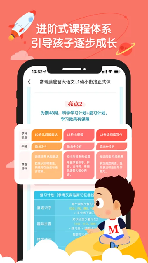 根据孩子的成长阶段,设计适龄课程内容,全套课程呈进阶式体系,打造更懂孩子的课程。