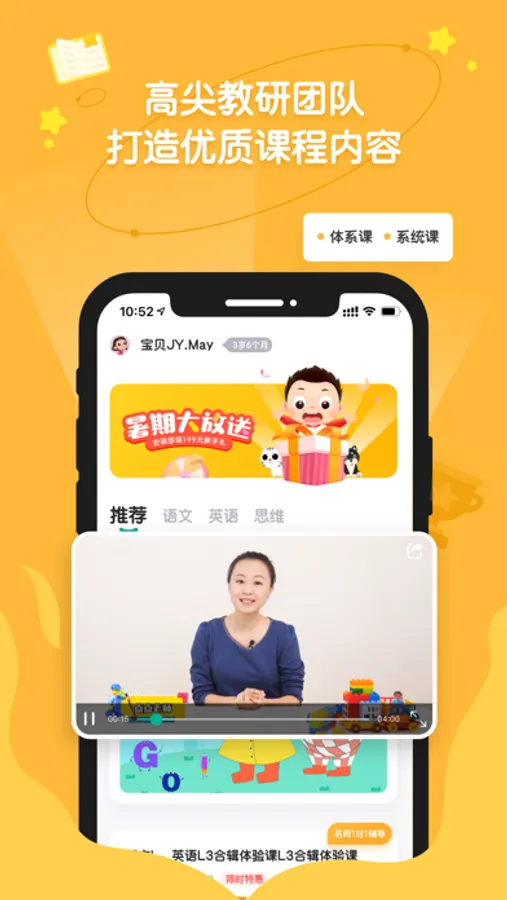 具有名校背景的教研团队,联合国内外知名教师,整合0-8岁儿童成长过程中的发育特点,精心打磨研发课程。
