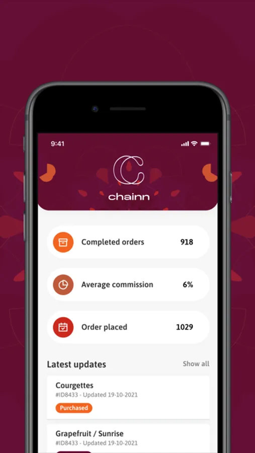 Customer: As a customer of Chainn BV Inchainn gives you insight into the status of your order and the origin of your product. In addition, Inchainn gives you direct insight into your outstanding invoices.