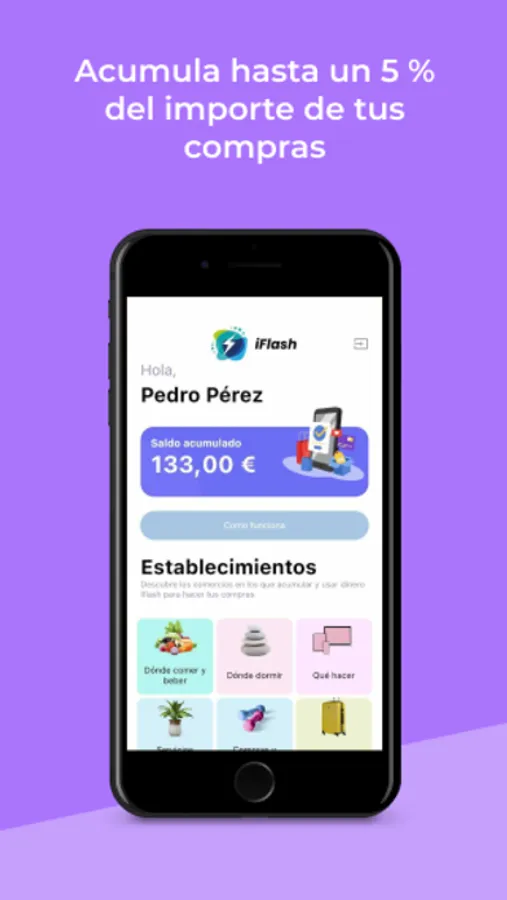 Con iflash acumula parte de tus compras en Dinero Iflash y paga cualquier compra que hagas en las tiendas asociadas o compra los productos de nuestro Market place y recogelos en tienda.