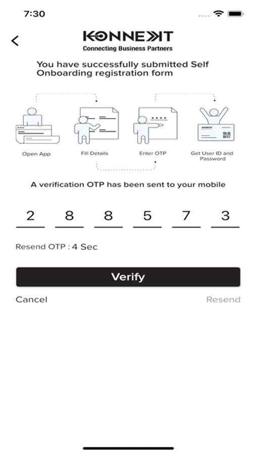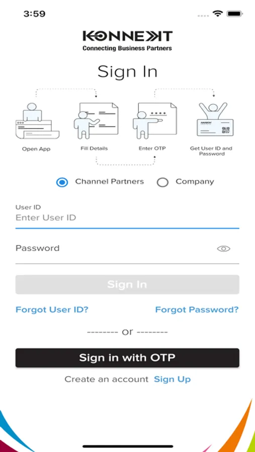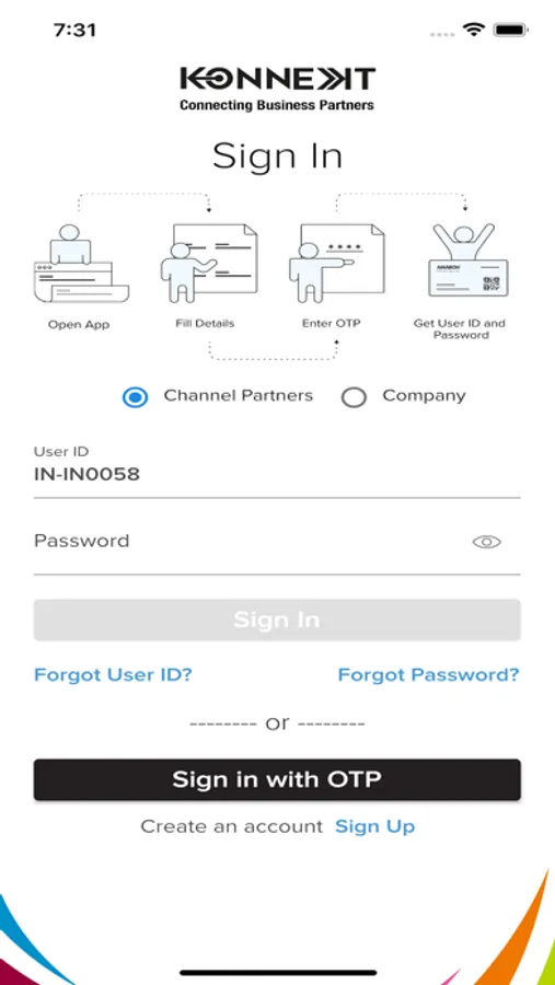 Self On Boarding: Any channel partner can download the mobile from the App Store and register using just mobile number. Unique User ID & Password is sent upon successful registration.