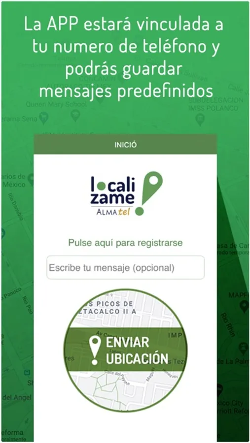 Localízame! AlmaTel es una aplicación para clientes de AlmaTel, especialmente diseñada para familias, que te permite enviar tu ubicación por mensaje corto (SMS) a los contactos que elijas de forma fácil y rápida, con sólo pulsar un botón.