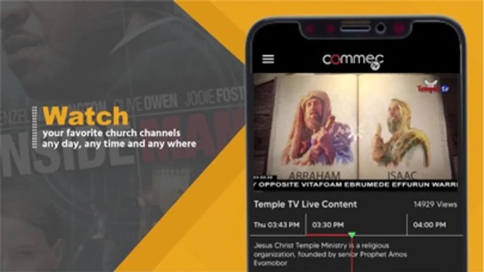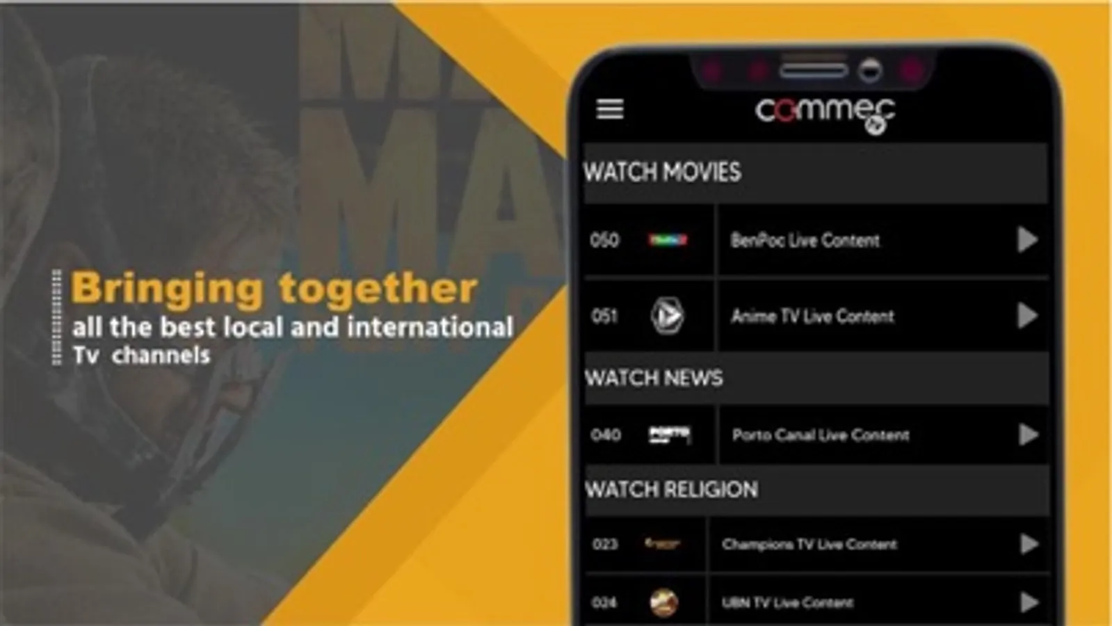 Commec TV offers access to the largest collection of African and International TV shows, series, soapies, religious, movies, and lifestyle entertainment direct from the continent.