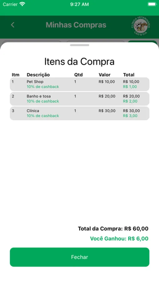 Sistema para o controle de cashback dos clientes da clínica veterinária Cão & Cia. Nele é possível o cliente fazer o seu cadastro e gerenciar seus serviços realizados na clínica. Acompanhando a geração de cashback e o extrato de utilização no pagamento.