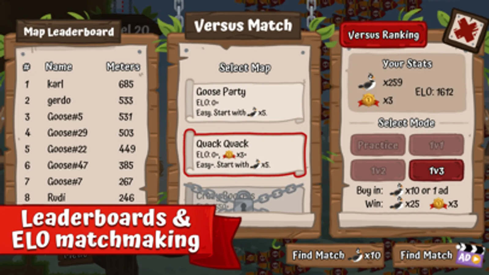 - Versus multiplayer with a real ELO matchmaking system: 1v1, 1v2 and 1v3