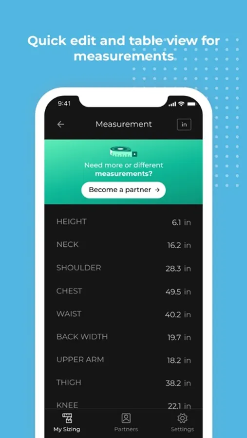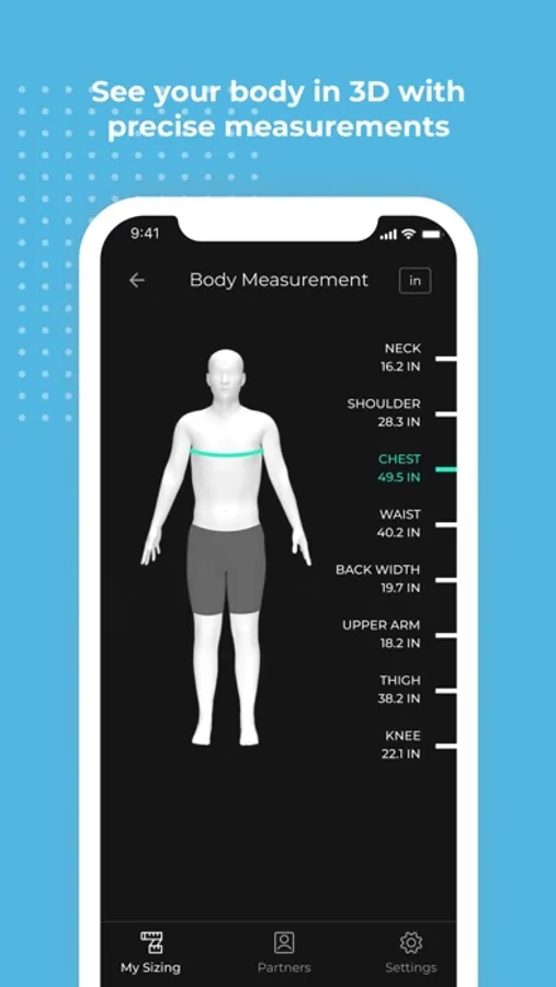 • See your 3D model and measurements, use it directly with our partner brand's online store