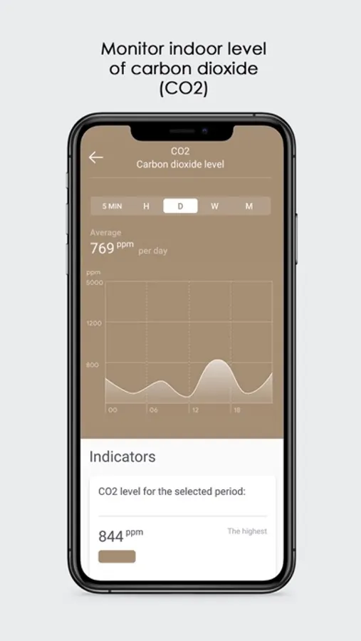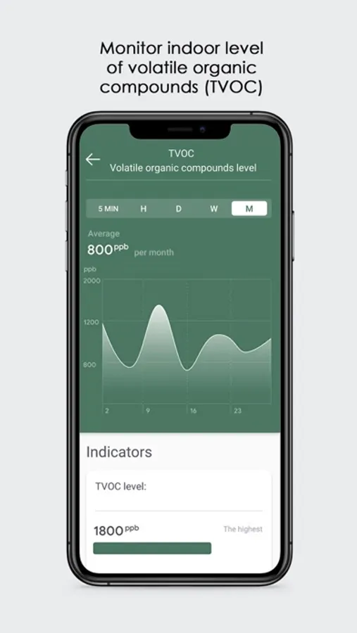 • View indoor levels of CO2, TVOC, humidity, outdoor and indoor temperatures in the form of graphs over several time periods;