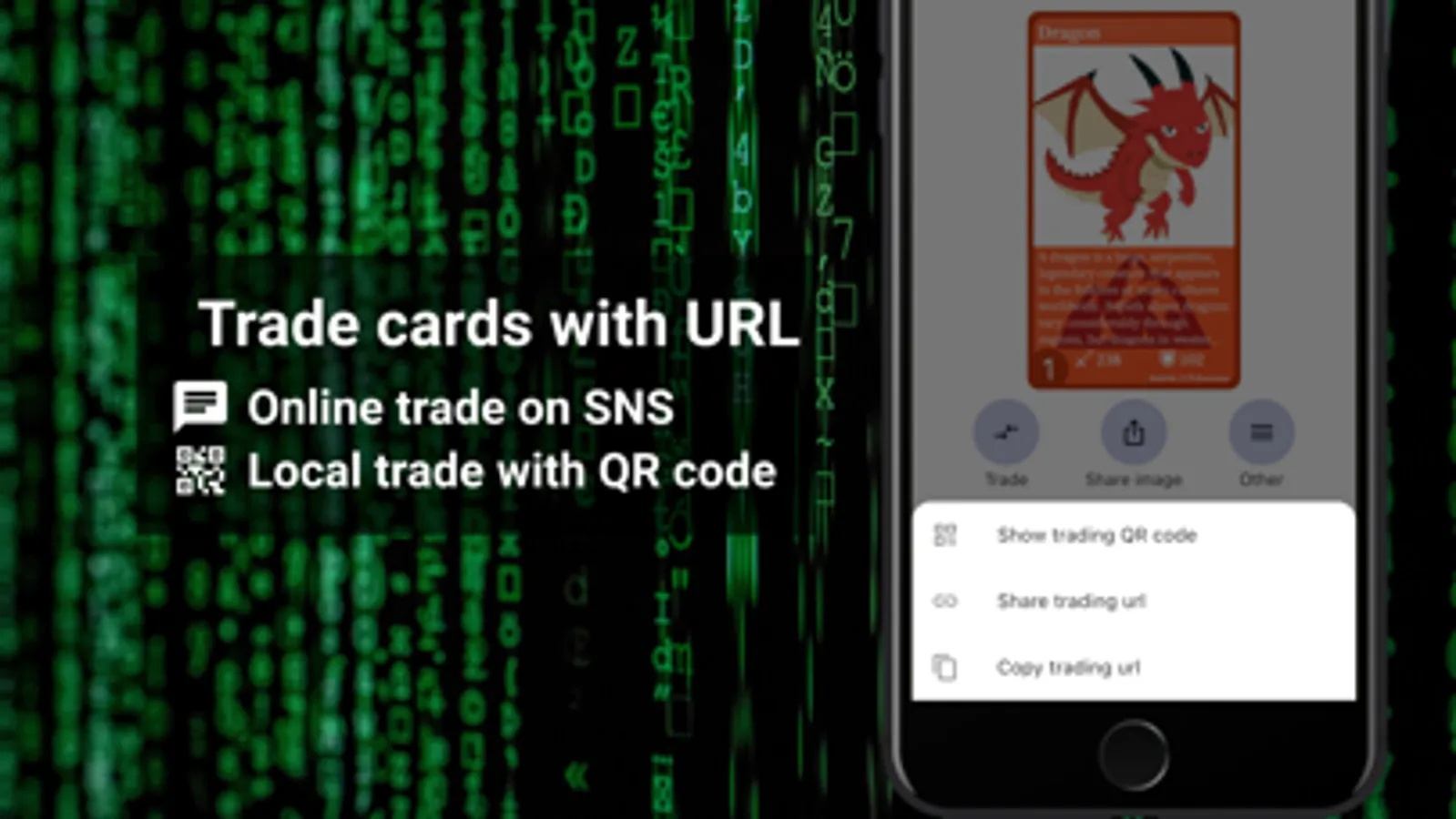 You can trade the created card using a QR code or URL.