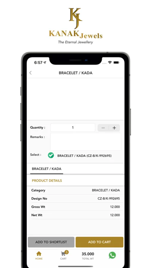* In-App Notifications - Don't miss an offer with the Kanak Jewels App. With in-built mobile notifications feature, you will be amongst the first ones to know about the latest collections and offers.