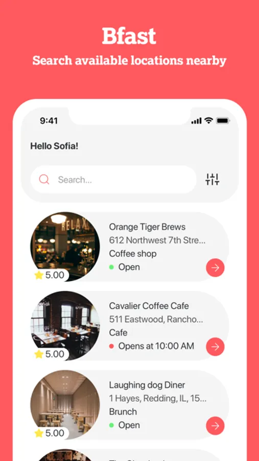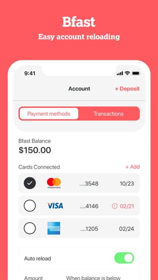 Upload funds to your BFast account in seconds. Order everything from coffee to clothes to live event tickets. Earn occasional rewards. Now you skip long lines to order, and avoid the hassle and germs of handing over your cash or card.