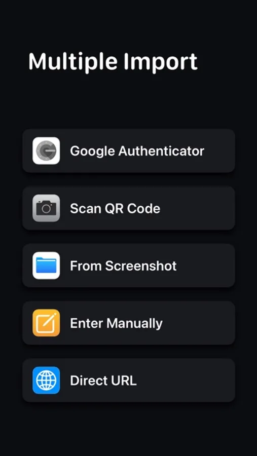 Easily import accounts and 2FA codes from other authenticators like Google Authenticator, password managers, and files.