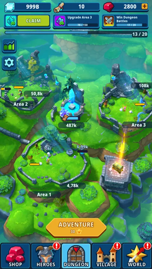 Monsters continuously attack the nearby villages. Besides exploring new dungeons you also have to protect them. Test your skills in the village siege mode and earn experience points needed to level up your heroes.