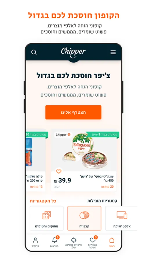 בצ'יפר תוכלו למצוא הטבות לפי קטגוריות. פשוט בוחרים את הקטגוריות שיעזרו לכם לחסוך ואנחנו נציג לכם את הקופונים בקטגוריות האלה ראשונים.