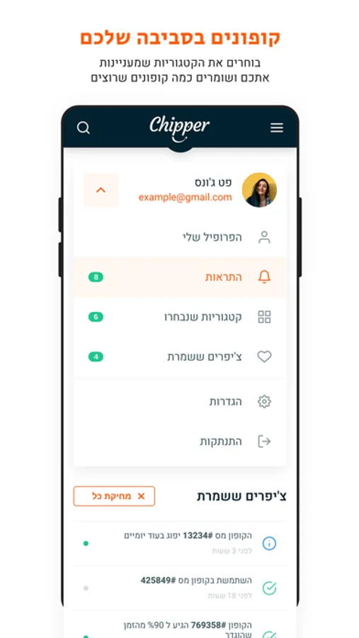 תוכלו גם להגדיר את הקטגוריות שמעניינות אתכם ואנחנו כבר נראה לכם את קופוני הצ'יפר שהכי יתאימו לכם