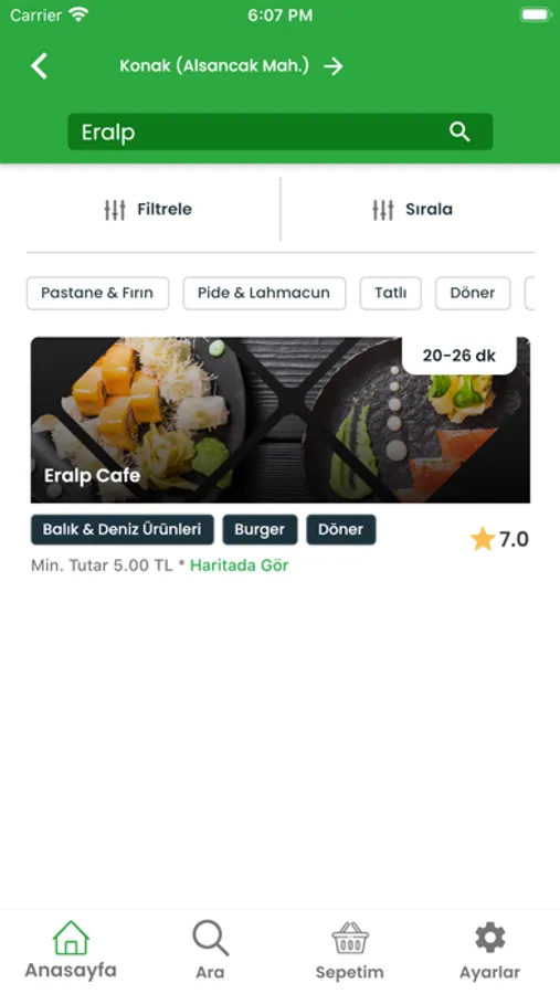 Tek hareketle bulunduğunuz konumdaki işletmelerden sipariş verin.