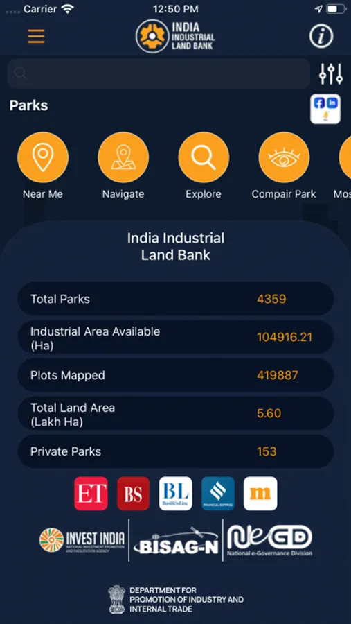 The India Industrial Land Bank, a GIS based platform of approximately 3300 industrial parks over 5 lakh hectares of land with information on allotted and available plots, contact details, nodal points of connectivity, raw material etc. was launched by the Hon’ble Minister for Commerce and Industry, Shri Piyush Goyal on 29th August 2020. As an additional tool for investors, for making industrial parks and related information easily accessible, the DPIIT developed first version of India Industrial Land Bank (IILB) Mobile App in collaboration with MeitY and Invest India.