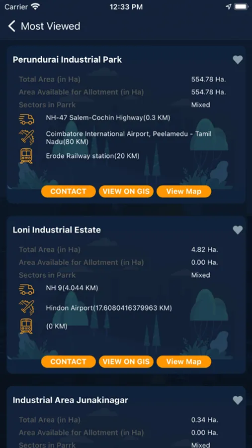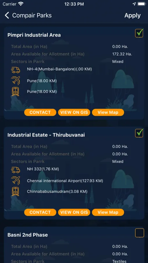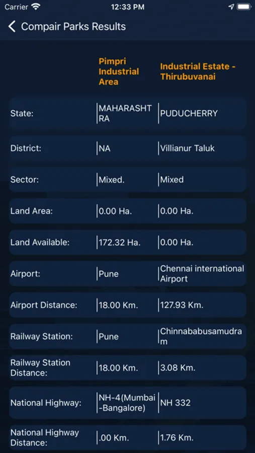 • Explore Parks – Industrial Park results showing information of industrial parks based on some parameters.