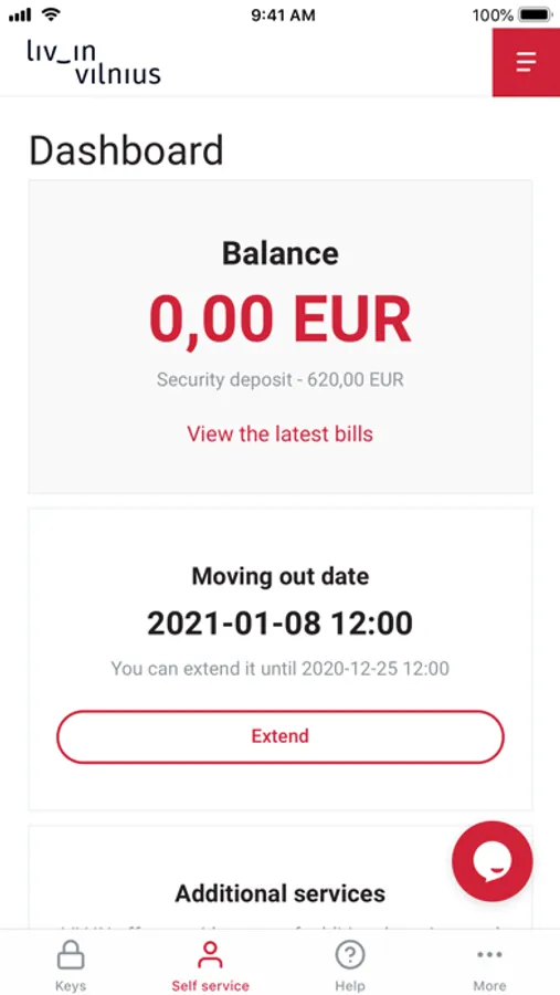 Manage your self-service account easily on the app. See your contract, check invoices, make payments, extend rent term, order extra services or send messages for an administration.