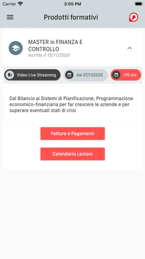 * consultazione del calendario dei propri prodotti formativi
