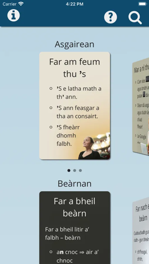 Flashcards to help with various aspects of Scottish Gaelic grammar, focussed particularly on common pitfalls and how to avoid them.