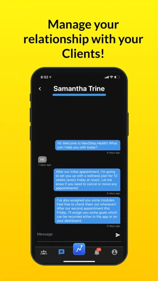 Provide virtual support resources from the convenience of your phone for substance use and mental health conditions. Manage and track your clients' progress, set client personal health goals, and engage with a passionate wellness community!